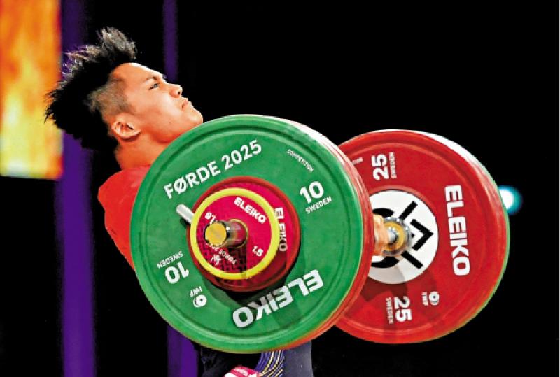 圖:何岳基在抓舉做出160公斤的成績。\新華社