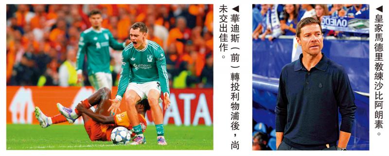 左圖:華迪斯(前)轉投利物浦後,尚未交出佳作。右圖:皇家馬德里教練沙比阿朗素。