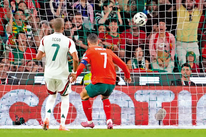 圖:葡萄牙前鋒C朗拿度(右)以41入球成為世盃外入球王。\美聯社