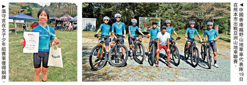 左圖:溫守言在女子少年組賽事獲得銅牌。右圖:中國香港越野山地單車代表隊19日在熊本市出戰亞洲山地車聯賽。