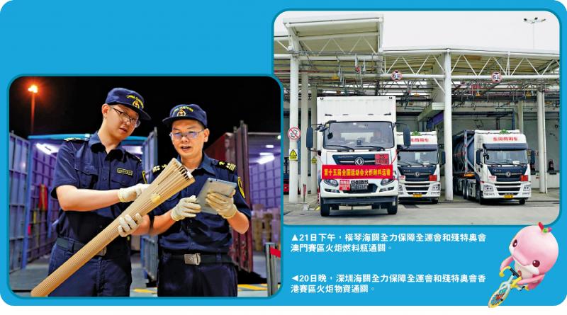 為確保火炬等特殊物資安全高效通關,深圳、拱北海關啟動十五運專項通關保障機制,依託大型賽事物資通關便利措施,實現「提前申報、精準監管、即到即驗」,為火炬在港澳傳遞活動保駕護航。