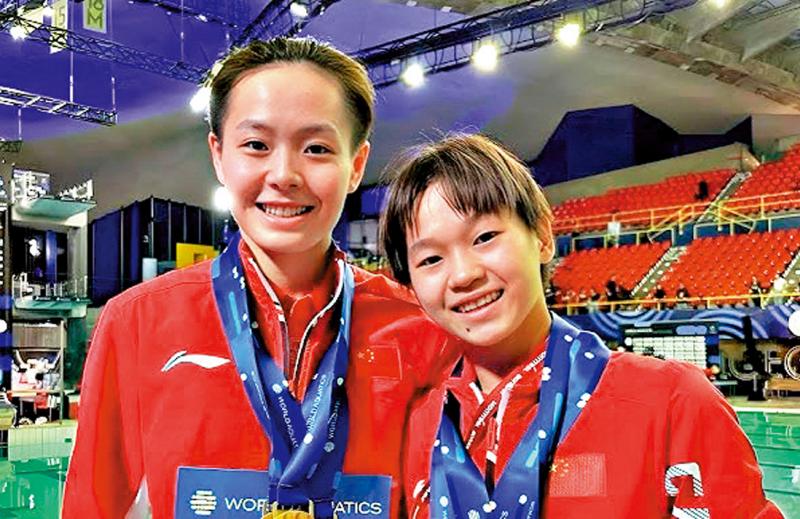 圖:全紅嬋(右)與陳藝文(左)兩位奧運跳水冠軍,將代表廣東出戰今屆全運會。\資料圖片