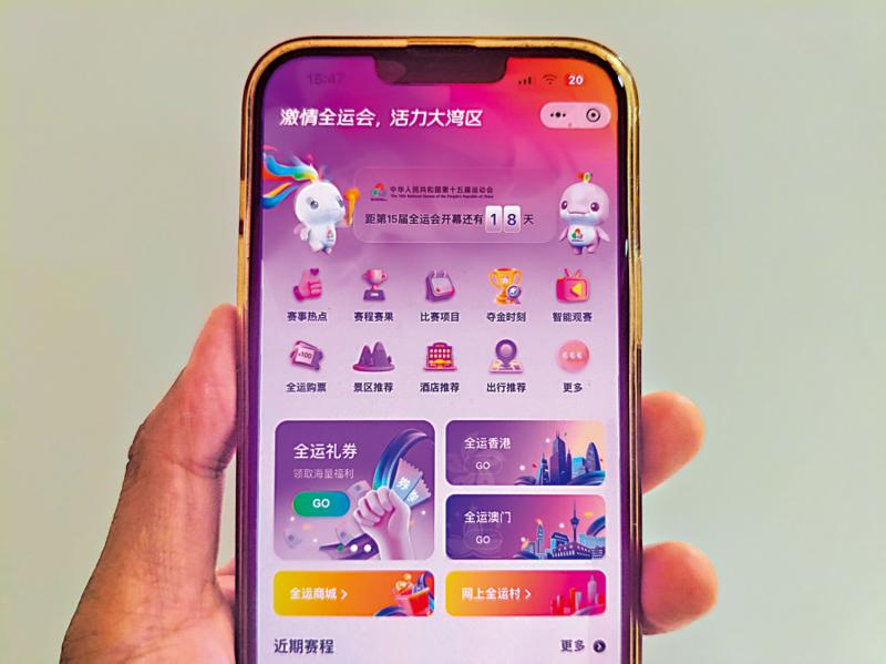 【大公報訊】記者敖敏輝廣州報道:近日,第15屆全運會廣東賽區執委會、殘特奧會廣東賽區執委會正式啟用的官方綜合服務平台──「粵港澳全運通」小程序。這款集賽事服務、城市導覽、互動體驗於一體的數字化工具,打通了「看比賽」和「逛灣區」的雙重需求,讓來自全國各地的觀眾、遊客,通過微信或支付寶即可輕鬆使用,實現賽事實時查、灣區觀光遊、三地服務通,暢享全運精彩與嶺南魅力。