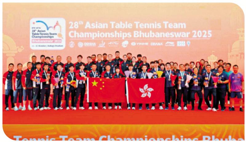 圖:2025乒乓球亞錦賽頒獎儀式結束後,國乒主動邀請港隊同框合影。