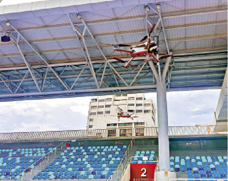 圖:無人機巡查十五運會比賽場館。\大公報記者敖敏輝攝