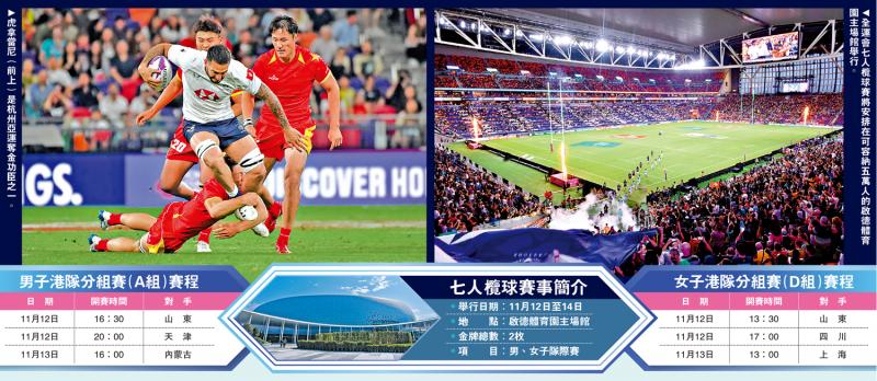 左圖:虎拿當尼(前上)是杭州亞運奪金功臣之一。右圖:全運會七人欖球賽將安排在可容納五萬人的啟德體育園主場館舉行。