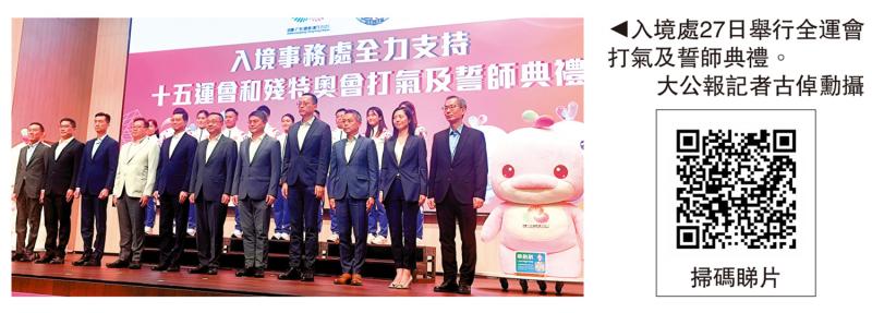 圖:入境處27日舉行全運會打氣及誓師典禮。\大公報記者古倬勳攝