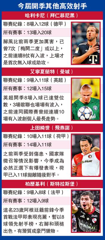 英超開季8場入球已達雙位數,3場歐聯也場場有波入,之前連同國際賽曾經連續10場有入波創個人最長走勢。