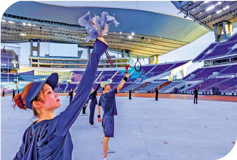今年8月以來,在開幕式排練的關鍵時期,兩場颱風突襲廣州,全城實施「五停」政策,很多工作被迫停工,工期一度陷入緊張。為挽回延誤時間,國慶假期成為團隊的「追趕期」─當演員按計劃休息兩天時,製作團隊放棄休假,堅守在舞台搭建、設備調試一線,通過高強度工作,最終將延誤的進度全部追回,確保整體籌備節奏不受影響。