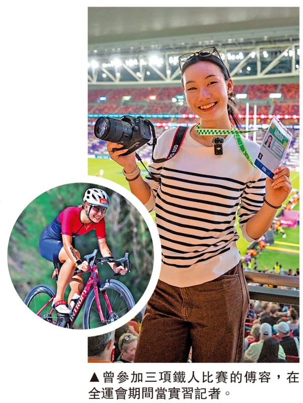 圖:曾參加三項鐵人比賽的傅容,在全運會期間當實習記者。