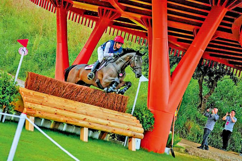 圖:港將何誕華在馬術三項賽越野賽中排第20。
