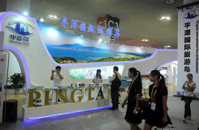 圖:9日,「投洽會」上的平潭展位亮出了「國際旅遊島」的新招牌\中新社