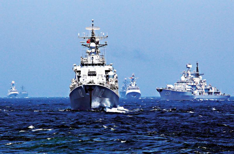 圖:中俄「海上聯合-2016」軍演將於12日在廣東湛江以東海空域舉行。圖為東海艦隊編隊2014年參演聯合反潛 資料圖片