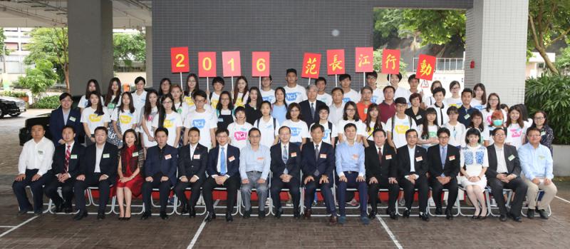 圖:參加2016「范長江行動」圖片展揭幕儀式的嘉賓和學子們合影留念