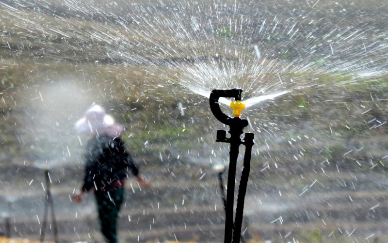 圖:農民用微噴水利設施澆灌農田,取代以往大水漫灌以節約水資源 資料圖片