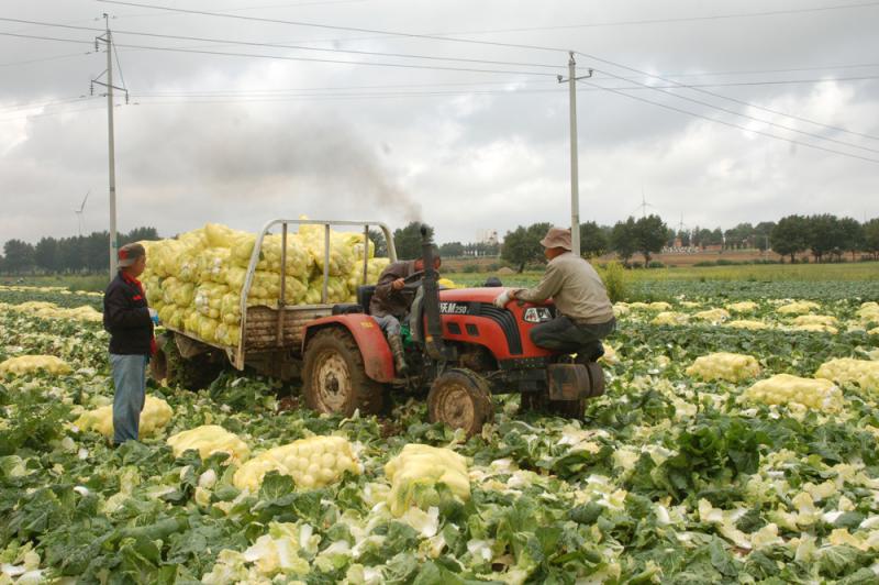 去年7月份,紫甘藍(又稱紫洋白菜)基地收購價2.4元/公斤,今年7月殺到0.14元/公斤,至9月初回升到1.6元/公斤。七甲村甲天合作社理事長楊軍慨嘆,猴年菜價如炒股,去年7月紫甘藍價格創新高,刺激菜農在這個節點瘋種,結果造成嚴重供過於求,今年多數菜農蝕本。尚義縣委宣傳部副部長龔躍海,有10年蔬菜經濟人的經歷,他說:「蔬菜價格過去是三年一輪迴,現在是一年一輪迴,而且在一個年度內,還會出現價格的大小月,菜價瞬息萬變」。