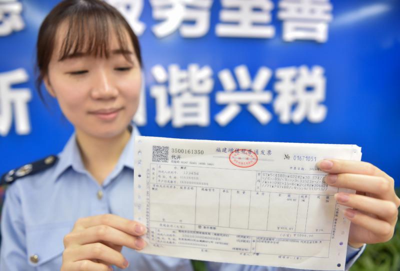 圖:福州地稅中心的工作人員展示增值稅發票 資料圖片