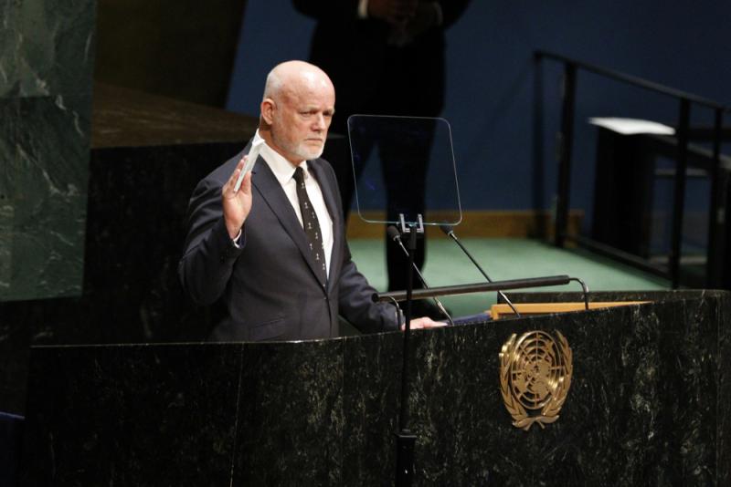 圖:新一屆聯大主席彼得.湯姆森宣誓就職 中新社