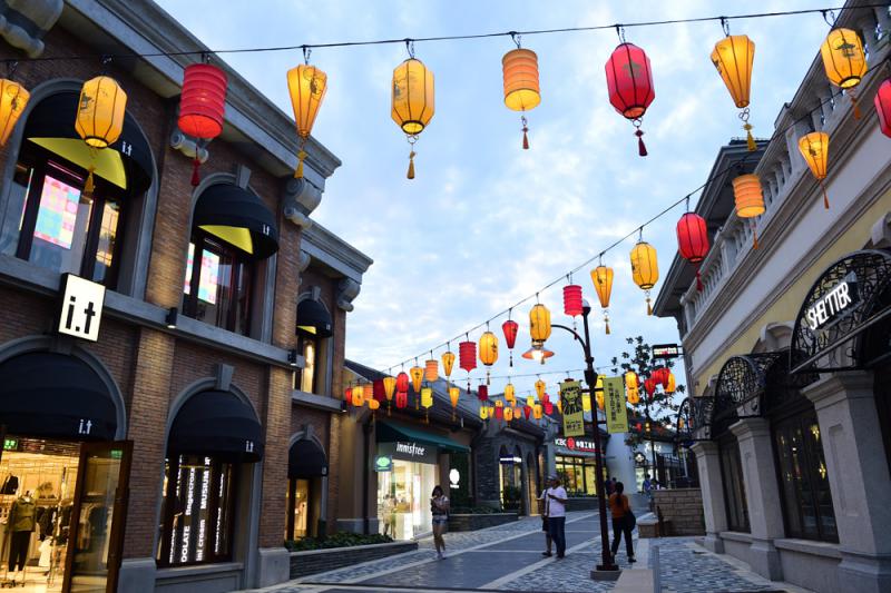 圖:滬迪園小鎮掛上節日燈籠,喜迎中秋 大公報記者倪夢璟攝