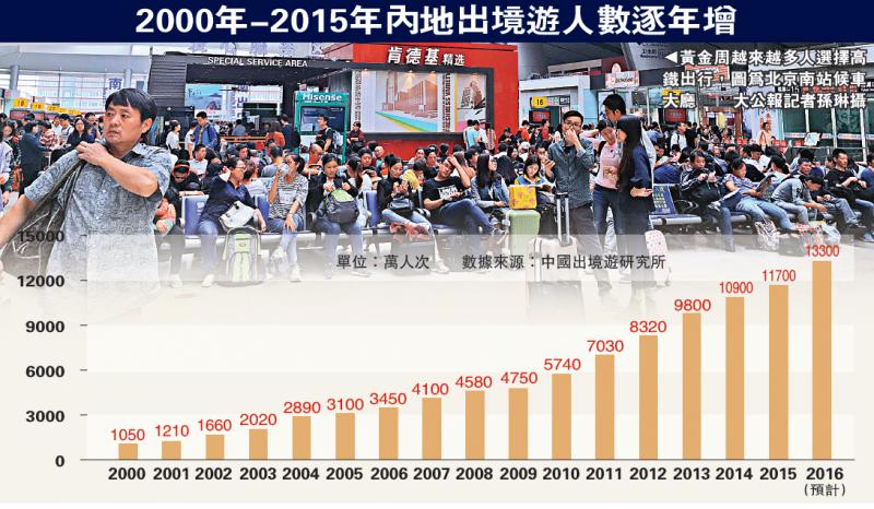 2000年-2015年內地出境遊人數逐年增
