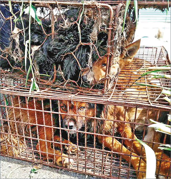 內地動物保護法的缺位致使虐畜行為得不到應有懲治。圖為2015年深圳市犬類保護協會從屠宰場救出的狗隻。 深圳市犬類保護協會供圖