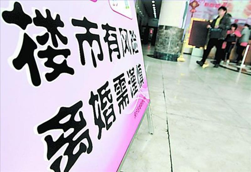 圖:2013年,上海市閔行區民政局婚登中心門口曾設公告警示牌,提醒「樓市有風險,離婚需謹慎」\網絡圖片