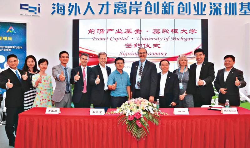 圖:深圳前沿科技產業基金與美國密歇根大學簽署合作備忘錄 /大公報記者毛麗娟攝