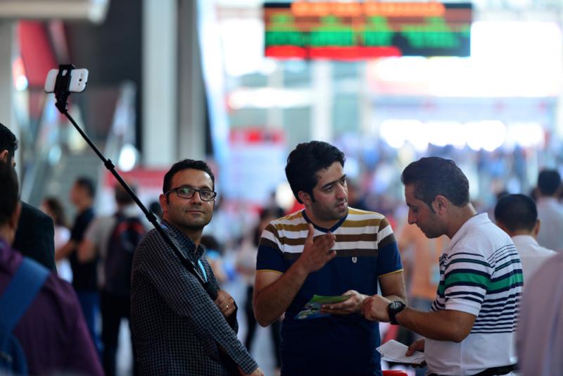 圖:廣交會參展客商在自拍/中新社