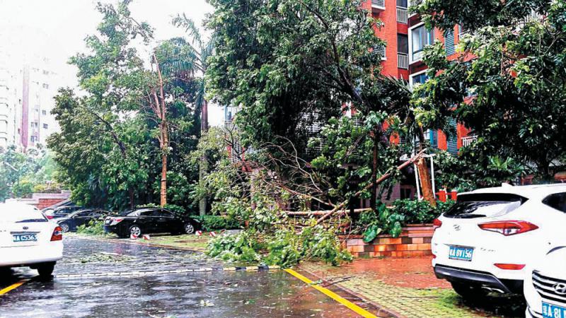 圖:「莎莉嘉」18日登陸海南,海口市內隨處可見被颱風吹倒的樹木 /大公報記者何玫攝