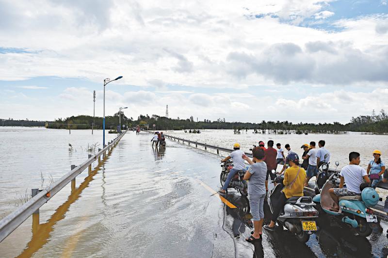 圖:「莎莉嘉」致海南多地受災,19日,洪水沒過瓊海市嘉積鎮的路面/新華社