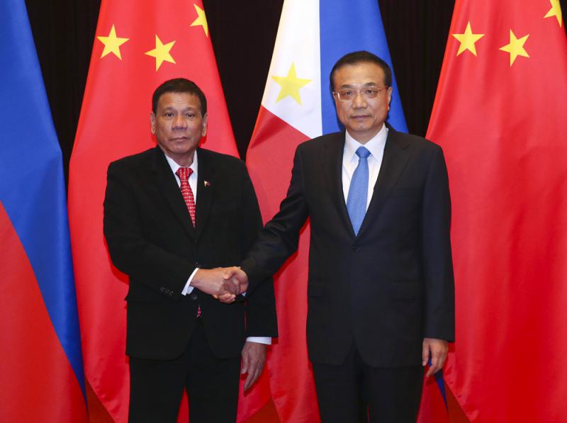 圖:20日下午,中國國務院總理李克強會見來華進行國事訪問的菲律賓總統杜特爾特/中新社