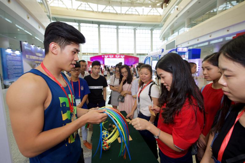 圖:台灣大學學生在海峽青年節上表演編織技藝 資料圖片