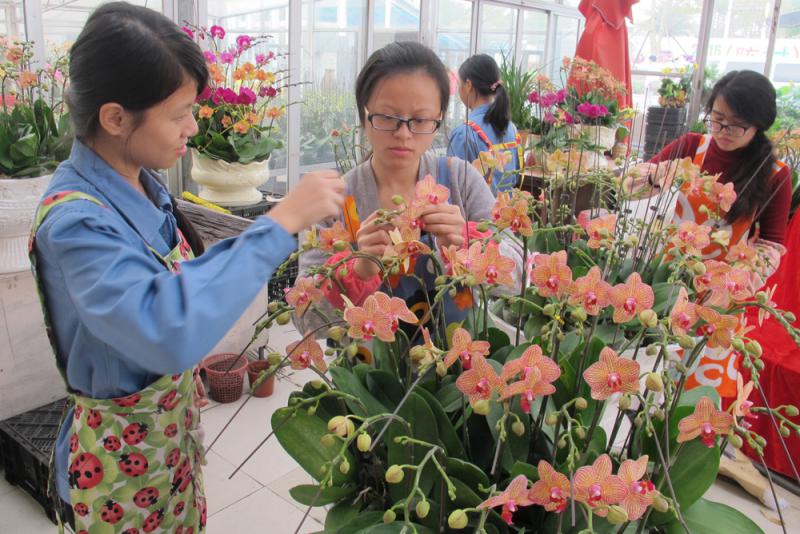 圖:陳村花卉市場檔主正忙於布置檔口/大公報記者盧靜怡攝