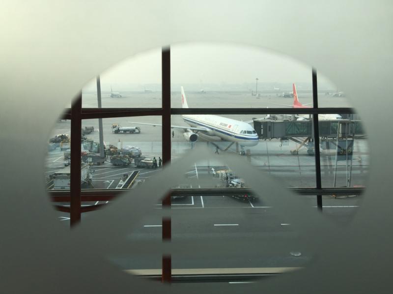 圖:17日,一架飛機抵達北京首都國際機場/新華社