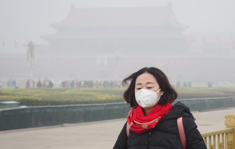 圖:20日,戴口罩的路人經過天安門廣場/中新社