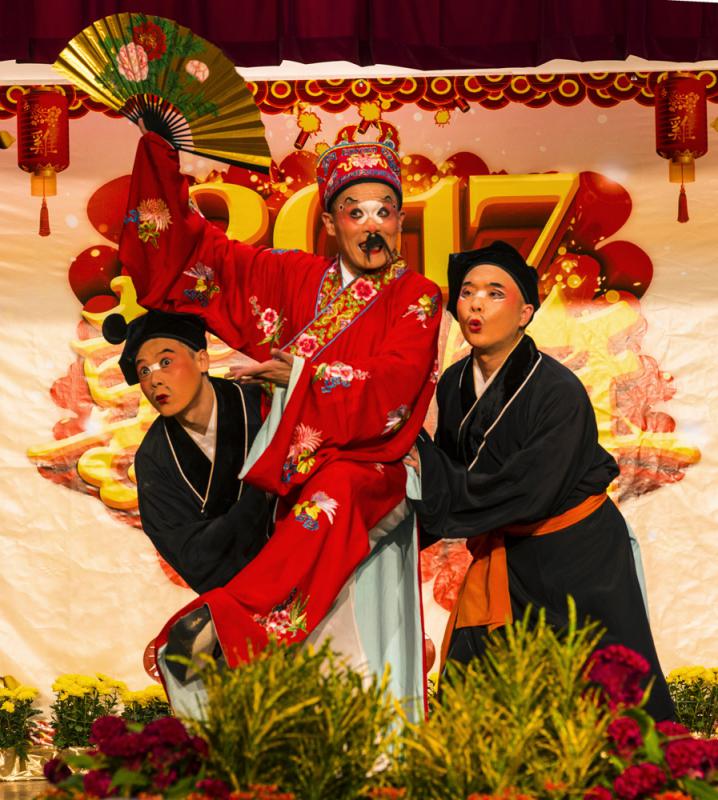 圖:高甲「群丑」在新加坡春節晚會上向當地華僑華人拜年\受訪者供圖