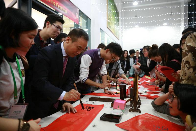 徐揚生的書法一直讓學生津津樂道。2015級學生葉曉星介紹,校長愛書法,並寫得非常棒。他平常也會跟同學一起練書法,春節前還給同學寫春聯。徐揚生還利用課餘時間,研究出了書法機器人,這讓學計算機的他覺得特有意思。而來自印度的2014級經管學院國際生Twinkle Sujanani則跟隨校長學過書法,「現在,家裏就掛有校長的書法作品」。