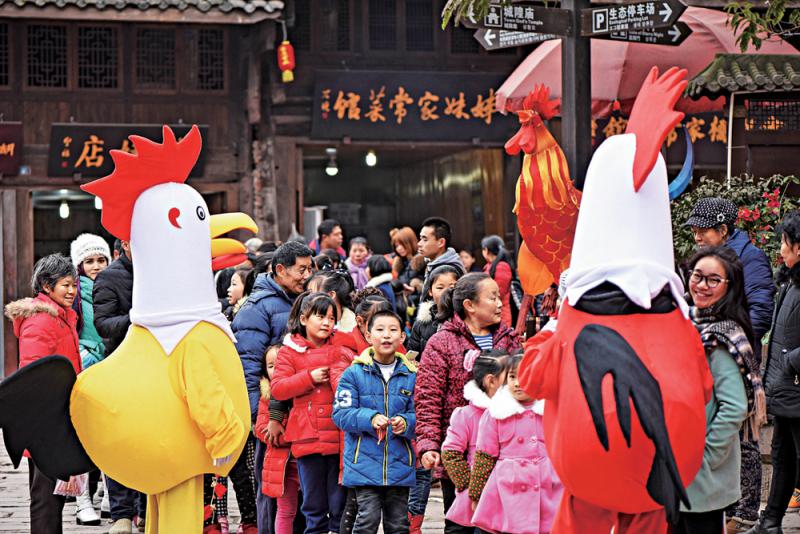 圖:去年重慶經濟增速為10.7%,列全國第一。圖為二月二日,重慶安居古城街道遊人如織\新華社