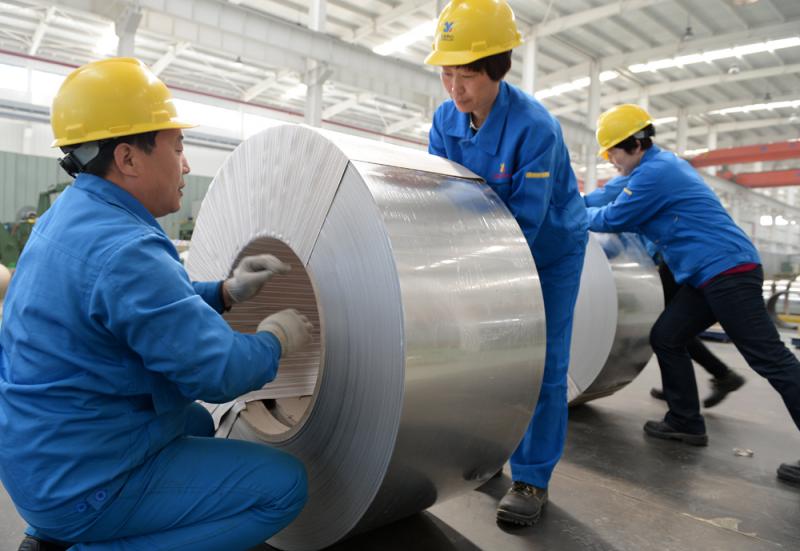 圖:河北邢台一所工廠內正裝運下線超薄不銹鋼帶材\資料圖片