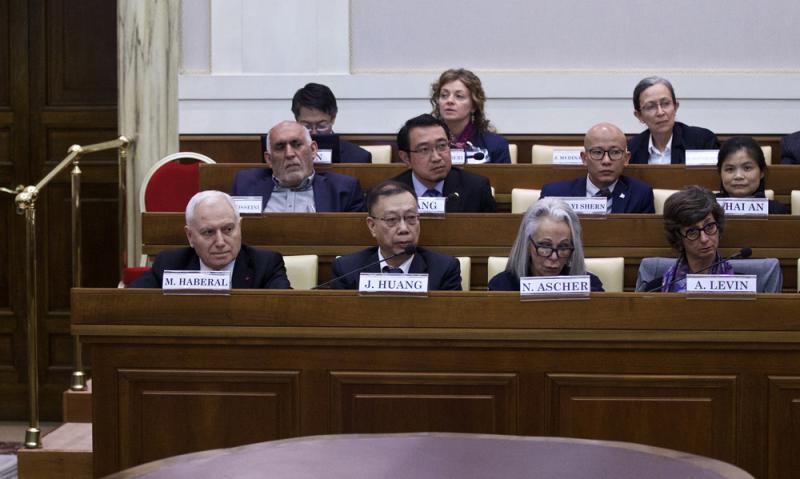 圖:7日,中國人體器官捐獻與移植委員會主任委員黃潔夫(前右三)在梵蒂岡出席「反對器官販賣全球峰會」\新華社