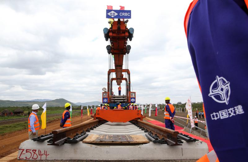 圖:中國承建肯尼亞蒙內鐵路項目進展順利,圖為馬庫埃尼附近第七標段鋪軌作業現場/資料圖片
