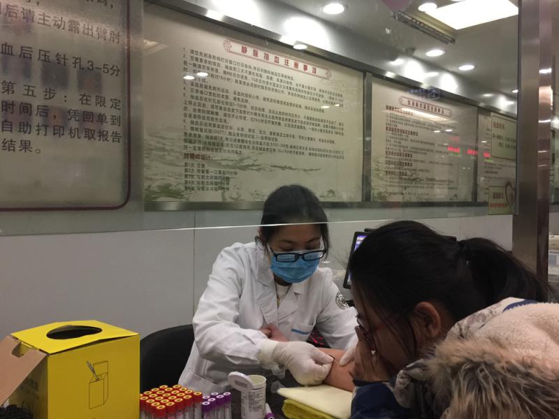 圖:浙江省中醫院內,醫護人員為病患進行採血/大公報記者俞晝攝