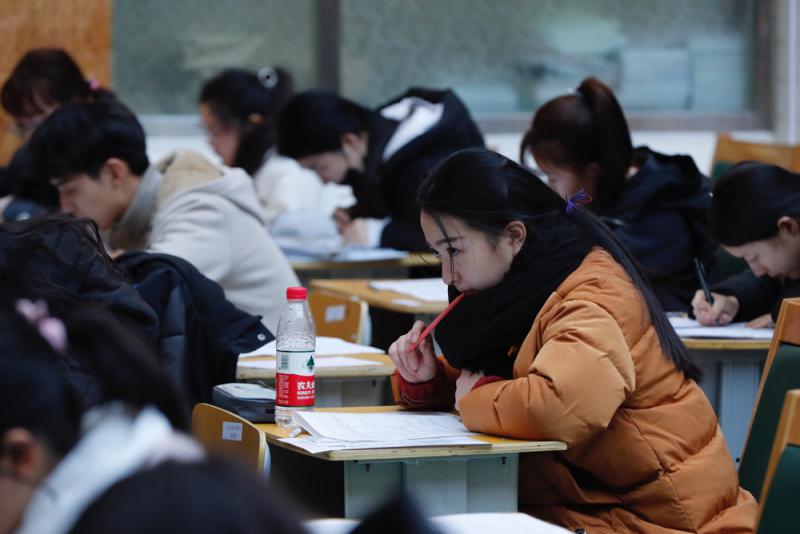 2月9日,參加北京電影學院視聽傳媒學院廣播電視編導專業考試的考生在考場答題。當日,北京電影學院視聽傳媒學院的廣播電視編導專業招生考試開始。該專業為視聽傳媒學院2017年新開設專業,計劃招生15人,4112人報考,招錄比達274:1,遠超表演專業114:1的招錄比。 新華社