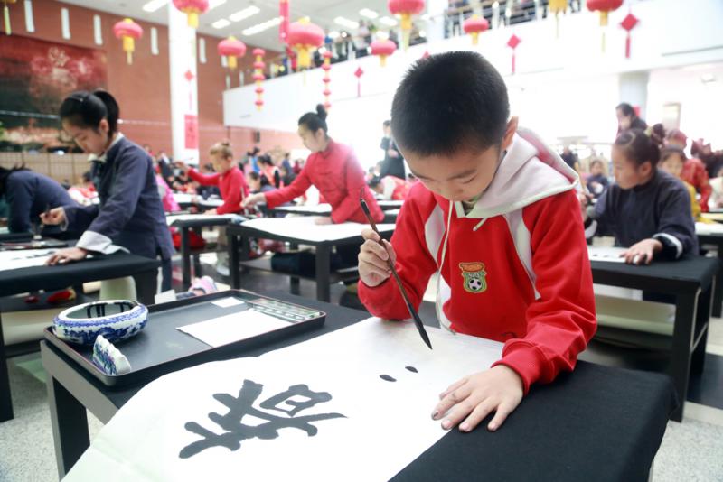 2月10日,大連市愛好書法的青少年在書「春」大賽決賽中。當日,大連市第十四屆書「春」大賽決賽在大連圖書館舉行。 新華社