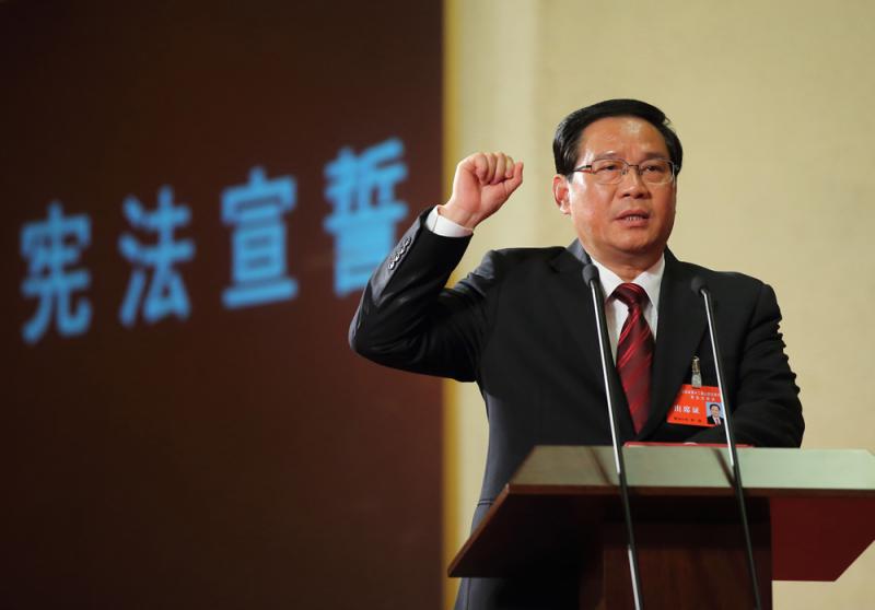 圖:李強當選江蘇人大常委會主任後,進行憲法宣誓\中新社