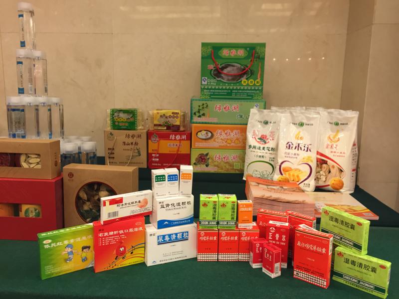 圖:廣東食藥品產業素以「廣東糧、珠江水、嶺南藥」享譽海內外,圖為部分粵產品牌\大公報記者方俊明攝