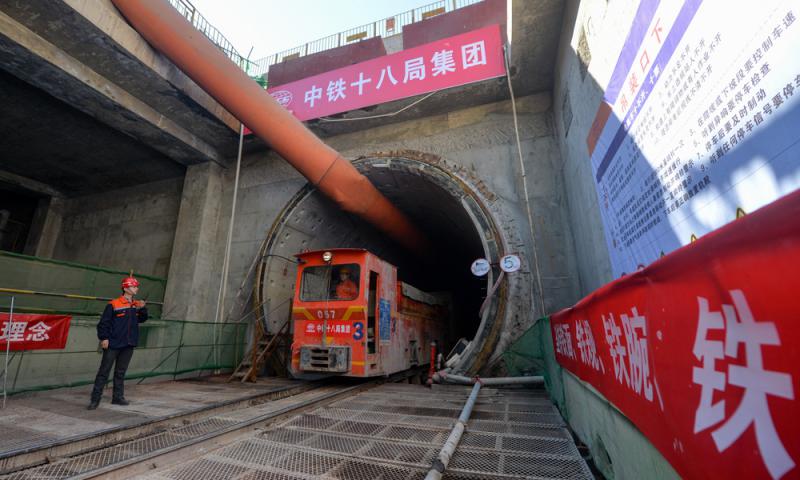 圖:2月25日,天津地鐵5號線成林道站至津塘路站實現雙線安全貫通\新華社