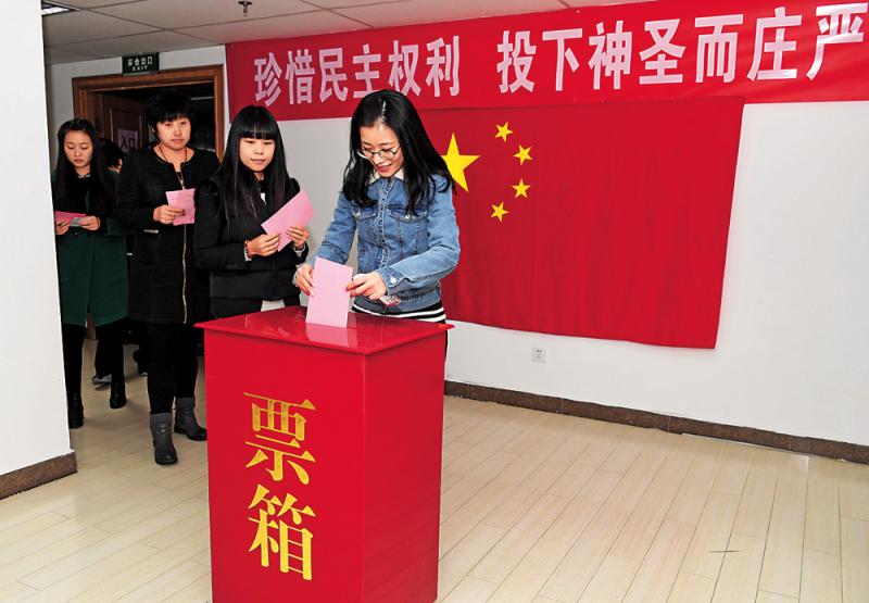 圖:二○一六年十一月十五日,選民在北京市東城區投票站投票選舉人大代表\資料圖片
