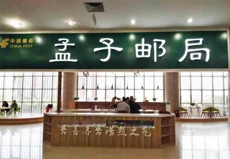 據了解,「孟子郵局」是在郵政普遍服務的基礎上,以孟子文化和鄒魯文化為主題,將郵政產品服務與鄒城文化相結合,通過挖掘儒孟文化資源,發揮郵政傳媒資源優勢,積極融入現代信息技術,打造的一個集郵政業務、圖書品鑒、休閒娛樂、購物以及線上活動於一體的全新綜合服務平台,集書、藝、茶、食於一體的文化棲息地,在弘揚中華優秀傳統文化的同時,也是郵政服務走進景點的嘗試。