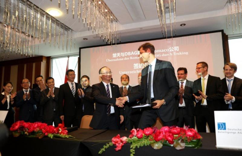 圖:簽字儀式上,中德雙方企業代表握手 網絡圖片